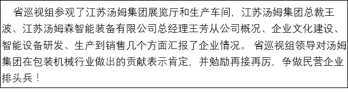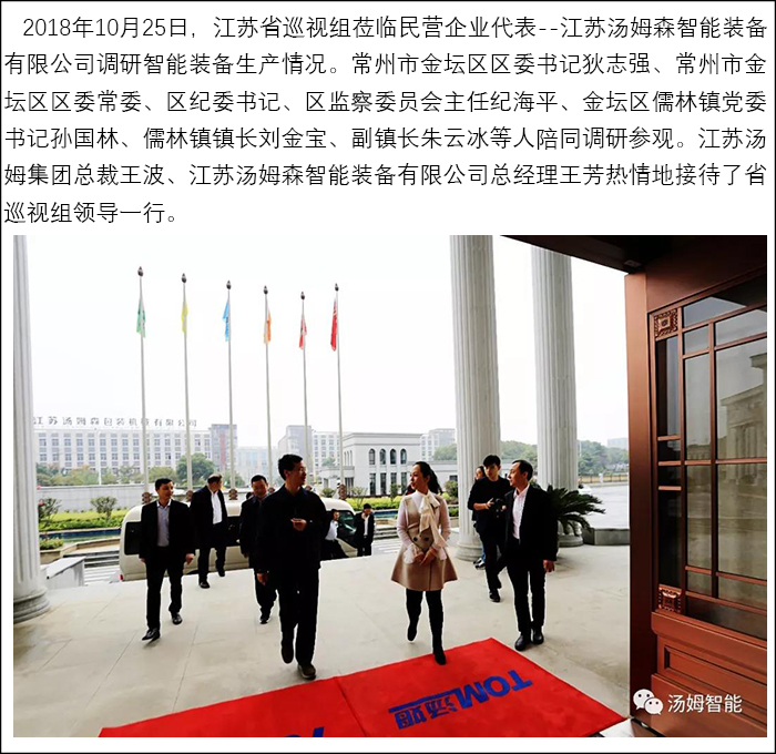 江蘇省巡視組蒞臨民營企業(yè)代表--江蘇湯姆集團調研參觀!