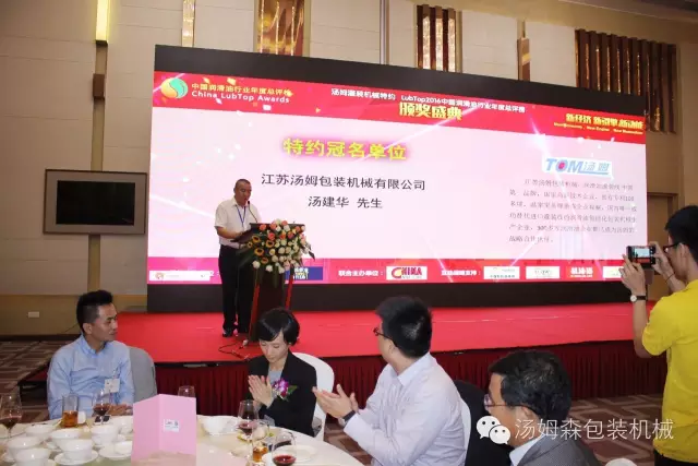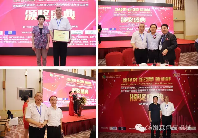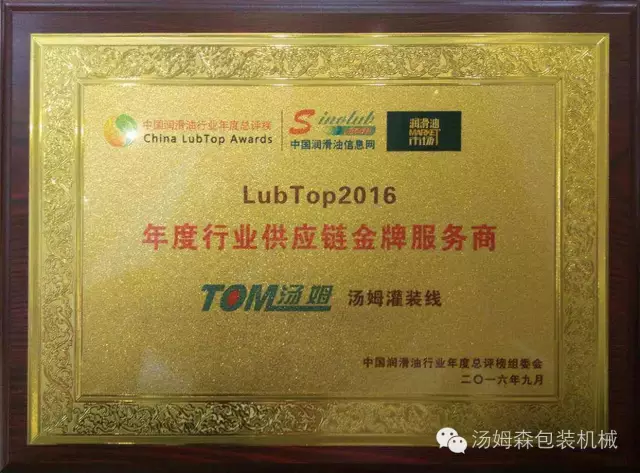 2016年9月19日,在花城廣州舉辦的“LubTop2016中國潤滑油行業(yè)年度總評榜”頒獎盛典上,江蘇湯姆集團(tuán)的設(shè)備贏得了社會公眾和專家評委的廣泛認(rèn)可,終榮獲“ LubTop2016年度行業(yè)供應(yīng)鏈金牌服務(wù)商”和“LubTop2016 年度具工匠精神獎”兩項殊榮,湯姆集團(tuán)董事長湯建華出席了頒獎盛典。這是整個潤滑油行業(yè)對湯姆集團(tuán)的高度認(rèn)可。