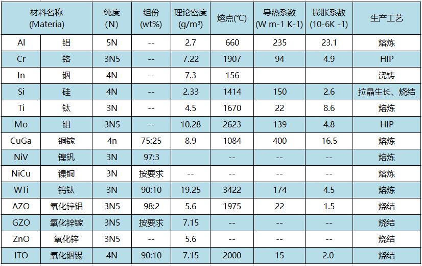 燦元在太陽能光伏領域中主要提供以下靶材產品: